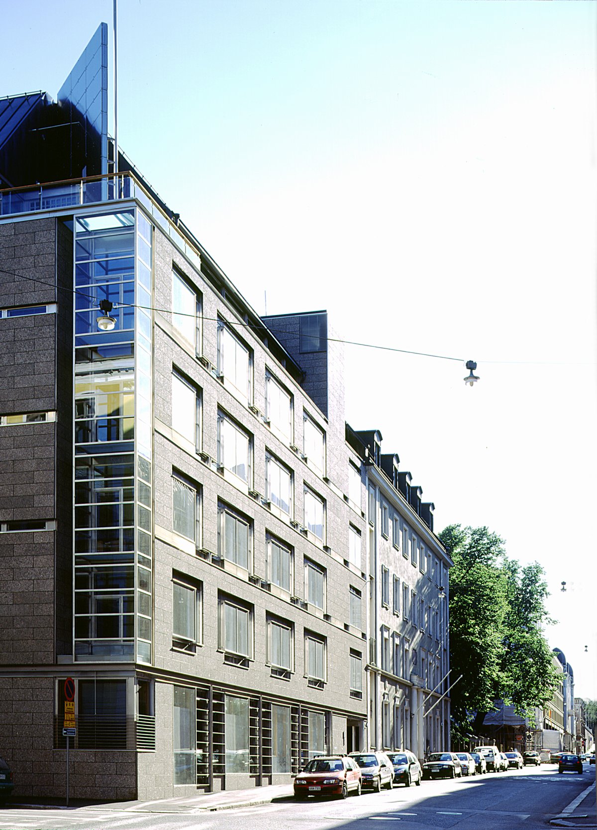 Julkisena rakennuksena ministeriön on perusteltua erottua ympäristöstään, samalla kun se sitoutuu yhtenäisen kaupunkimiljöön pääperiaatteisiin. Kadun puoleinen kattomuoto jatkaa naapurien linjaa. Julkisivuja liittää naapuritaloihin vastaavanlainen jäsentely, joka on saatu aikaan nykyarkkitehtuurin keinoin, isojen ikkunapintojen reliefivaikutelmalla ja kapeilla ikkunanauhoilla. Julkisivujen umpiosat on verhottu suomalaisella graniitilla. Materiaalivalinnasta käytiin talon valmistuttua jonkin verran keskustelua, koska se poikkeaa naapureiden rappauspinnasta, mutta se korostaa samalla julkisen rakennuksen identiteettiä. Sisäpihan puolella julkisivut ovat betonia ja niissä on nauhaikkunat. Ratkaisu viittaa perinteiseen rakentamistapaan: pihajulkisivut on ollut tapana käsitellä vaatimattomammin kadun puoleisiin verrattuina.