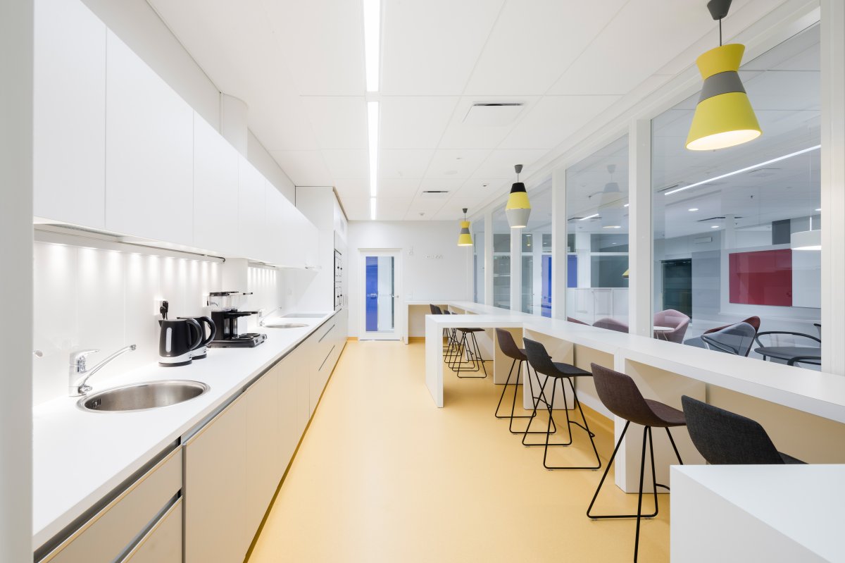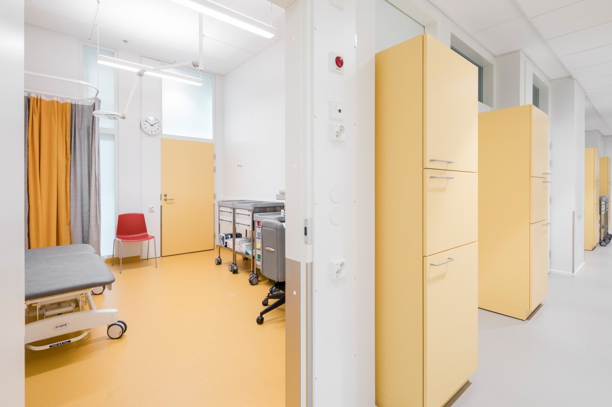 In the Health and Well-being Centre, multisector professionals of social welfare and health work in close collaboration, enabling comprehensive services to the clients. Since the operations will be continuously developed, the spaces of the centre were designed to be flexibly adaptable. The consulting and treatment rooms are shared by specialists and are therefore generic and furnished to meet diverse needs. In addition, the IT equipment and electronic communication of the centre lessen the need for permanent work spaces.