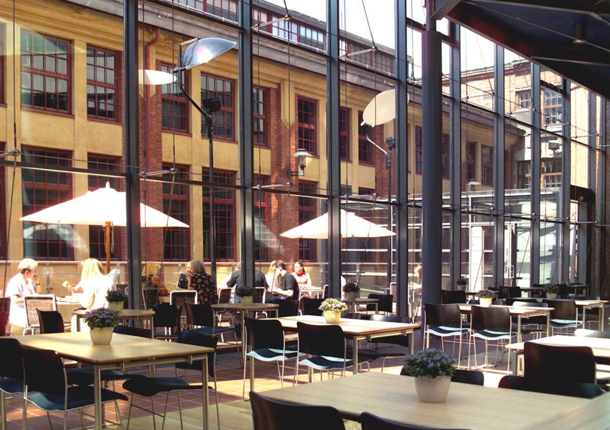 Both buildings are located at the termination of a street view, Aleksis Kiven katu 9 at an urban hub as well. The materials and colours of the facades correlate with the surrounding building stock while also lending an idiosyncratic layer to the cityscape. Before the formation of the Nordea Campus, Satamaradankatu 5 provided the main entrance to the city block. Now, the restaurant courtyard of the building at the centre of the city block forms a covered, terraced piazza-like space with a view the height of a whole wall towards the iron bed factory.